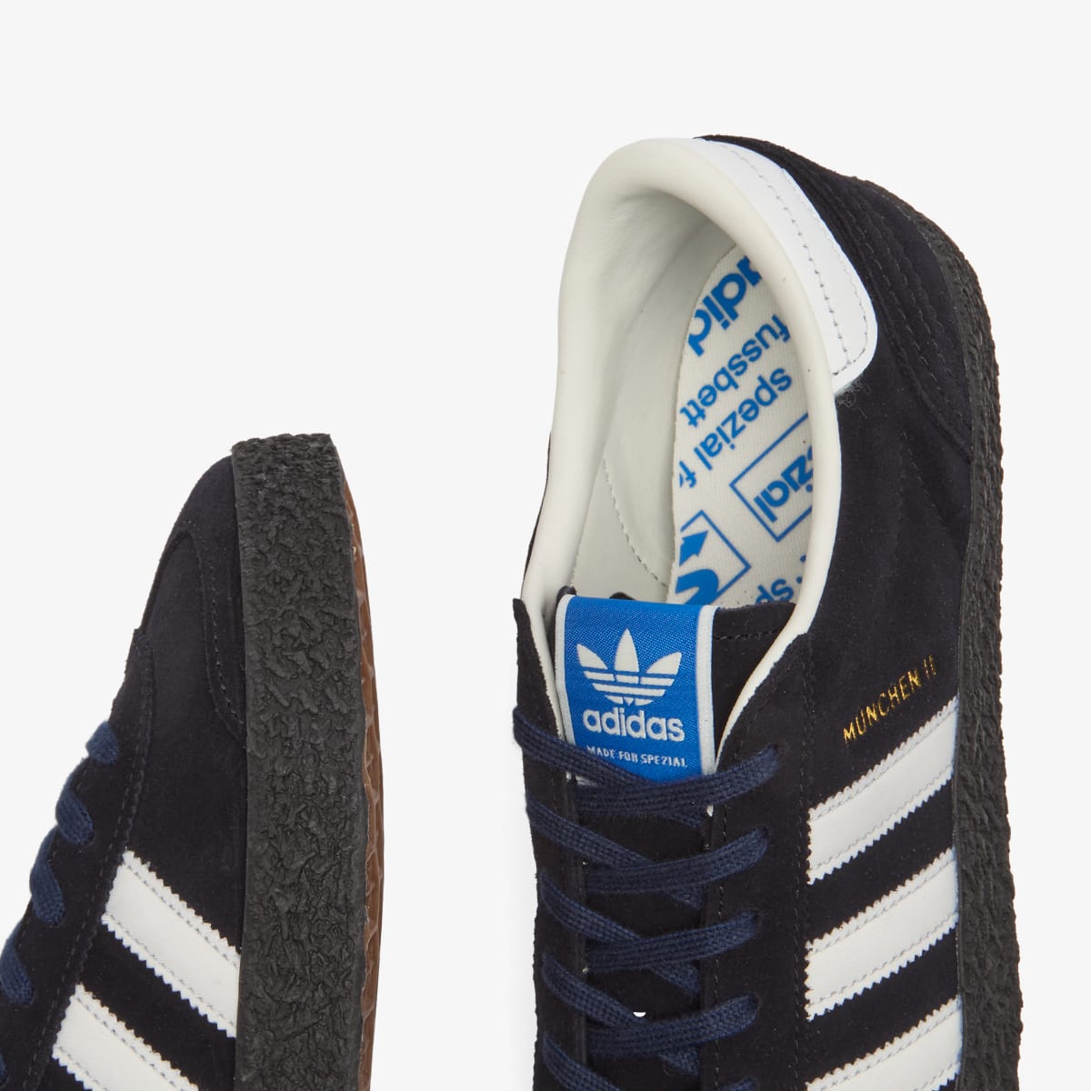 The adidas Munchen II SPZL sneaker draws from the streamlined style of late-‘80s training shoes, reimagined through the lens of Spezial’s modern style. Originally designed for performance, the Munchen silhouette became a terrace staple thanks to its clean lines and low-profile build. This SPZL iteration refines the formula with a textured rubber sole for durability and grip, while keeping to iconic design codes with the soft suede upper, contrast 3-Stripes, and adidas tongue label.