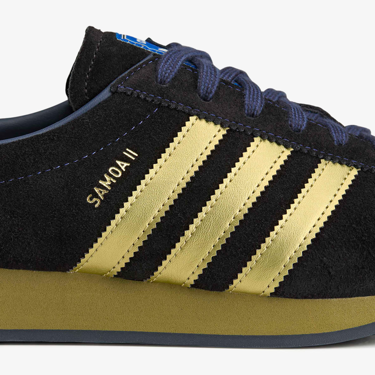 The adidas Spezial Samoa II sneaker gets the full SPZL treatment, pairing deep‑cut archive references with premium upgrades. The shape stays true to its ’70s roots — clean, sporty, instantly adidas — while new details like the suede tongue and gold‑tone branding add a refined edge. It’s a heritage staple reimagined with impeccable craftsmanship that makes Spezial so respected. The Samoa’s original release in the late ’70s was part of adidas’ push into multi‑purpose training footwear, which is why the silhouette has always carried that slightly more robust, all‑rounder feel.