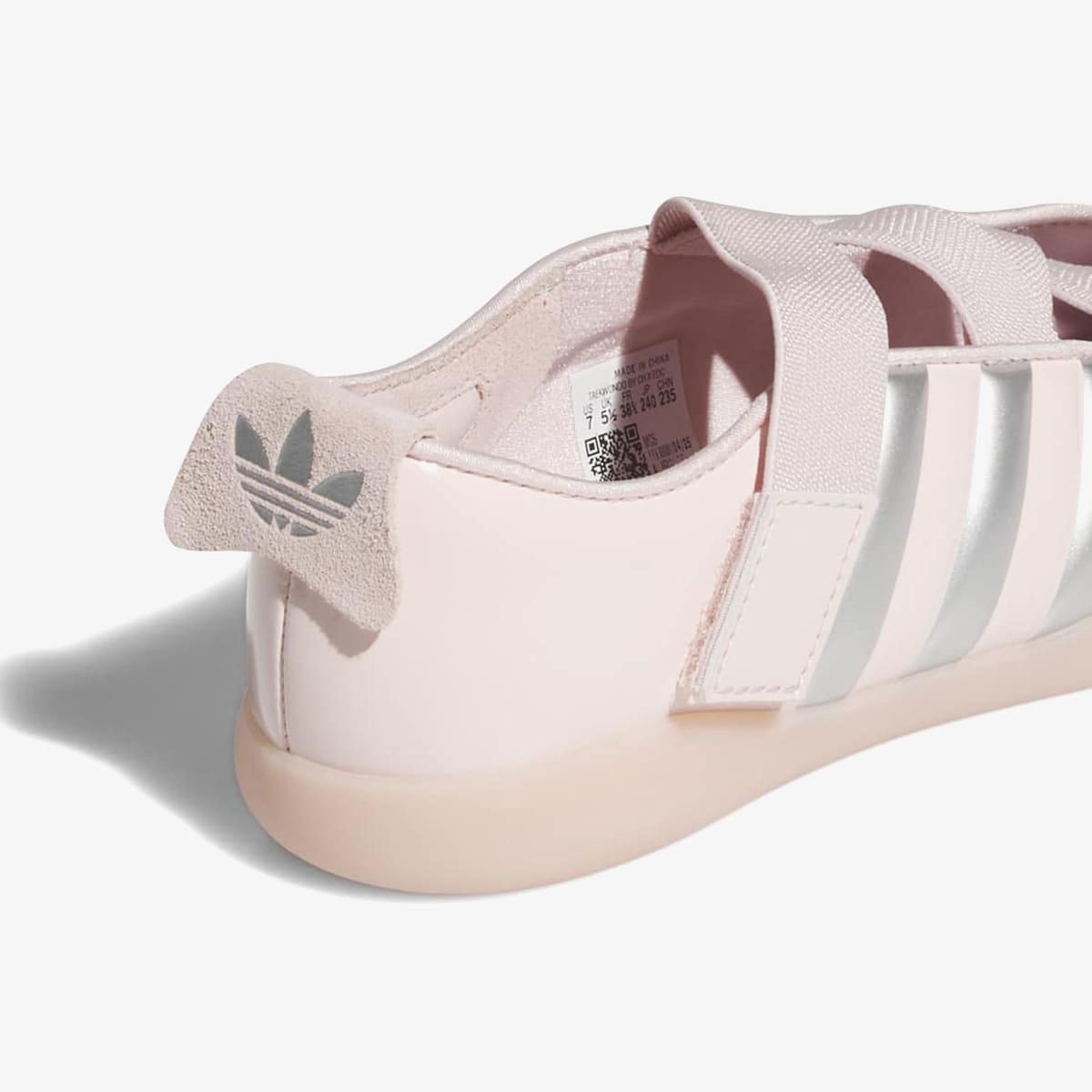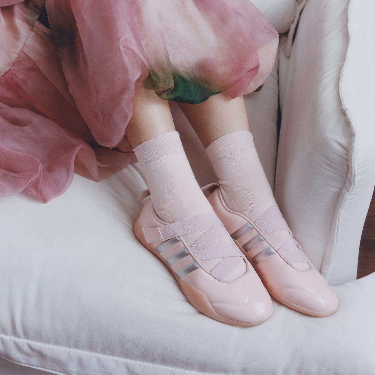 It’s been the year of the ballet flat. Next up, the adidas Taekwondo sneaker is seen through the lens of CLOT’s Edison Chen, and the fantastical, romantic world of fashion designer Caroline Hu. The Hu x Chen duo balance elegance and combat to perfection on this adidas’ Taekwondo “sneakerina”. The leather is replaced by a moulded one-piece upper, finished in a gloss shine and silver striping on the side wall. The worlds of martial arts and ballet really come together on the lacing: elastic zig zag strapping gracefully carry Edison and Caroline’s imaginative design codes.