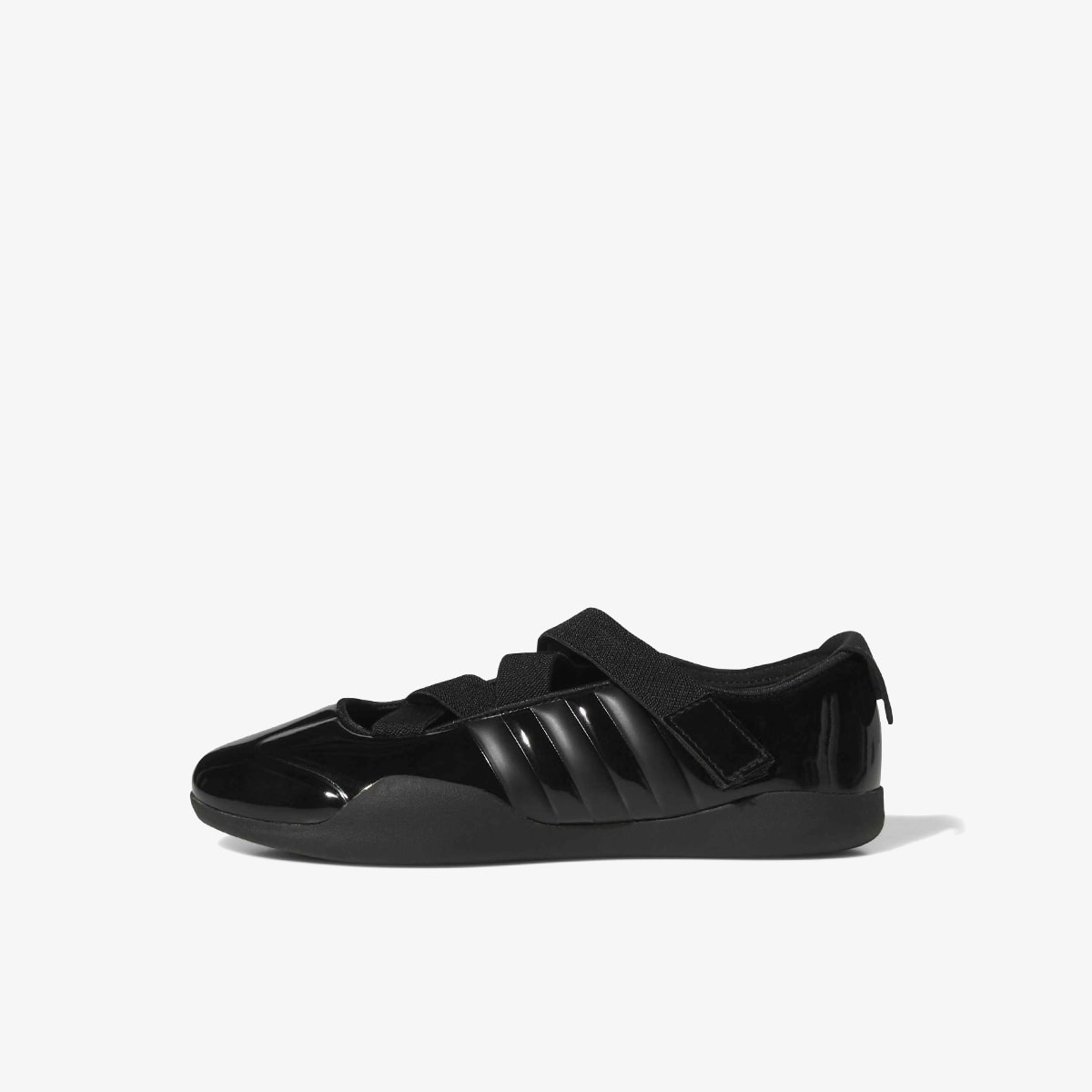 It’s been the year of the ballet flat. Next up, the adidas Taekwondo sneaker is seen through the lens of CLOT’s Edison Chen, and the fantastical, romantic world of fashion designer Caroline Hu. The Hu x Chen duo balance elegance and combat to perfection on this adidas’ Taekwondo “sneakerina”. The leather is replaced by a tonal black, moulded one-piece upper, finished in a gloss shine and black striping on the side wall. The worlds of martial arts and ballet really come together on the lacing: elastic zig zag strapping gracefully carry Edison and Caroline’s imaginative design codes.