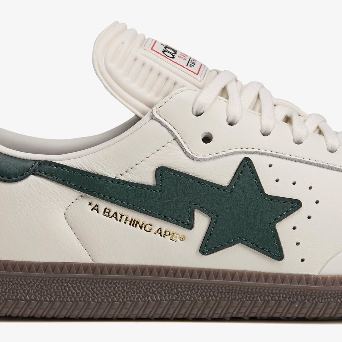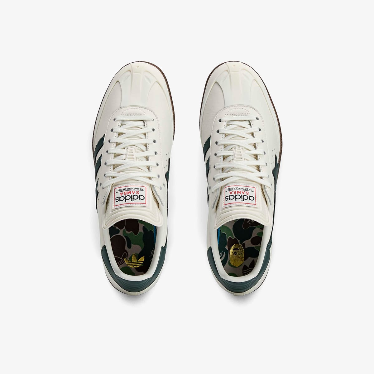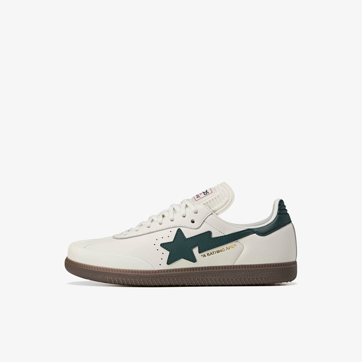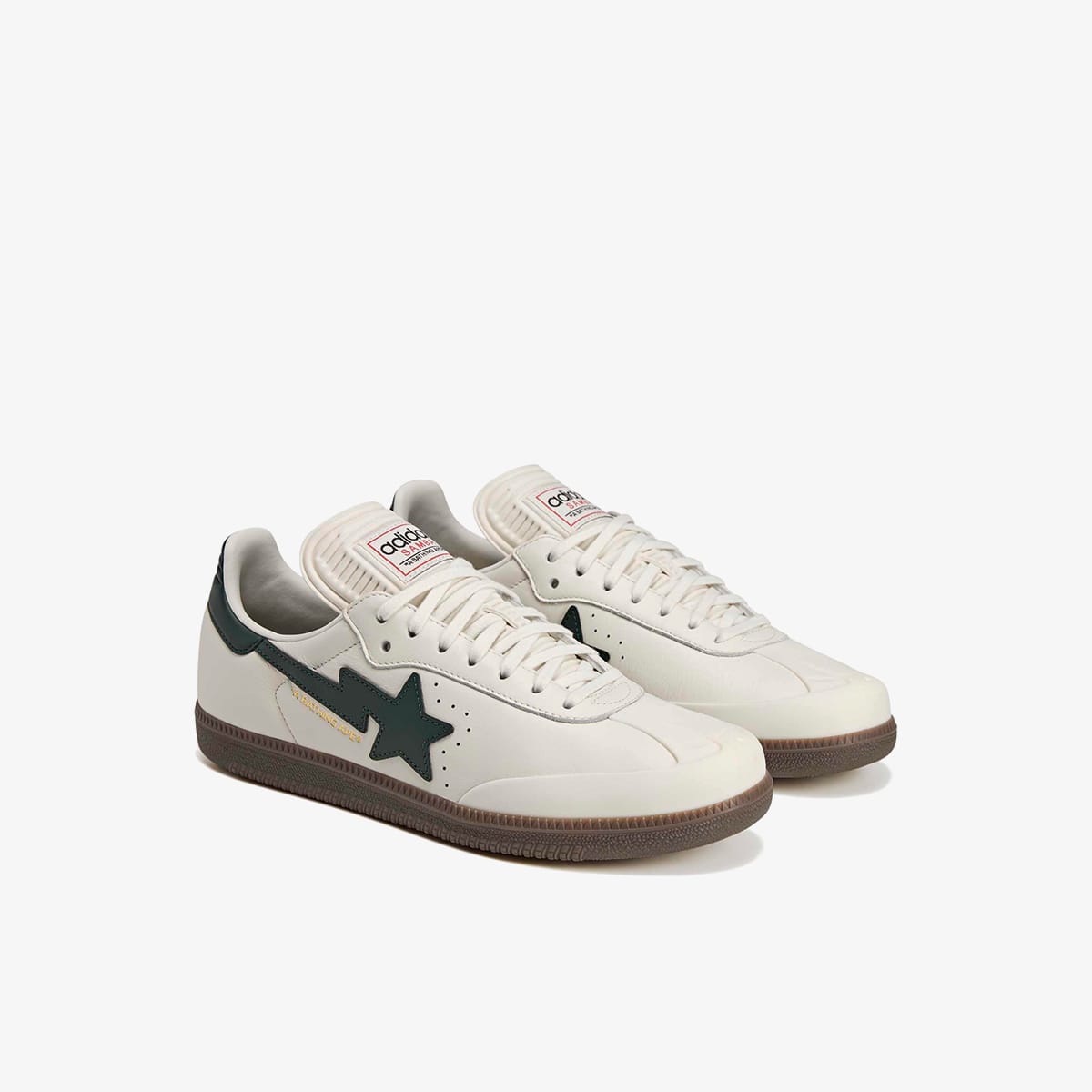 A Bathing Ape rejoin forces in anticipation of the 2026 World Cup, releasing a collaborative rendition of the legendary Samba. Dressed in white leather with dark green accents, it retains its footballing roots with its low-profile silhouette and T-shaped toe. In the spirit of collaboration, you’ll find adidas’ 3-Stripes gracing one side and BAPE’s STA logo on the other.
