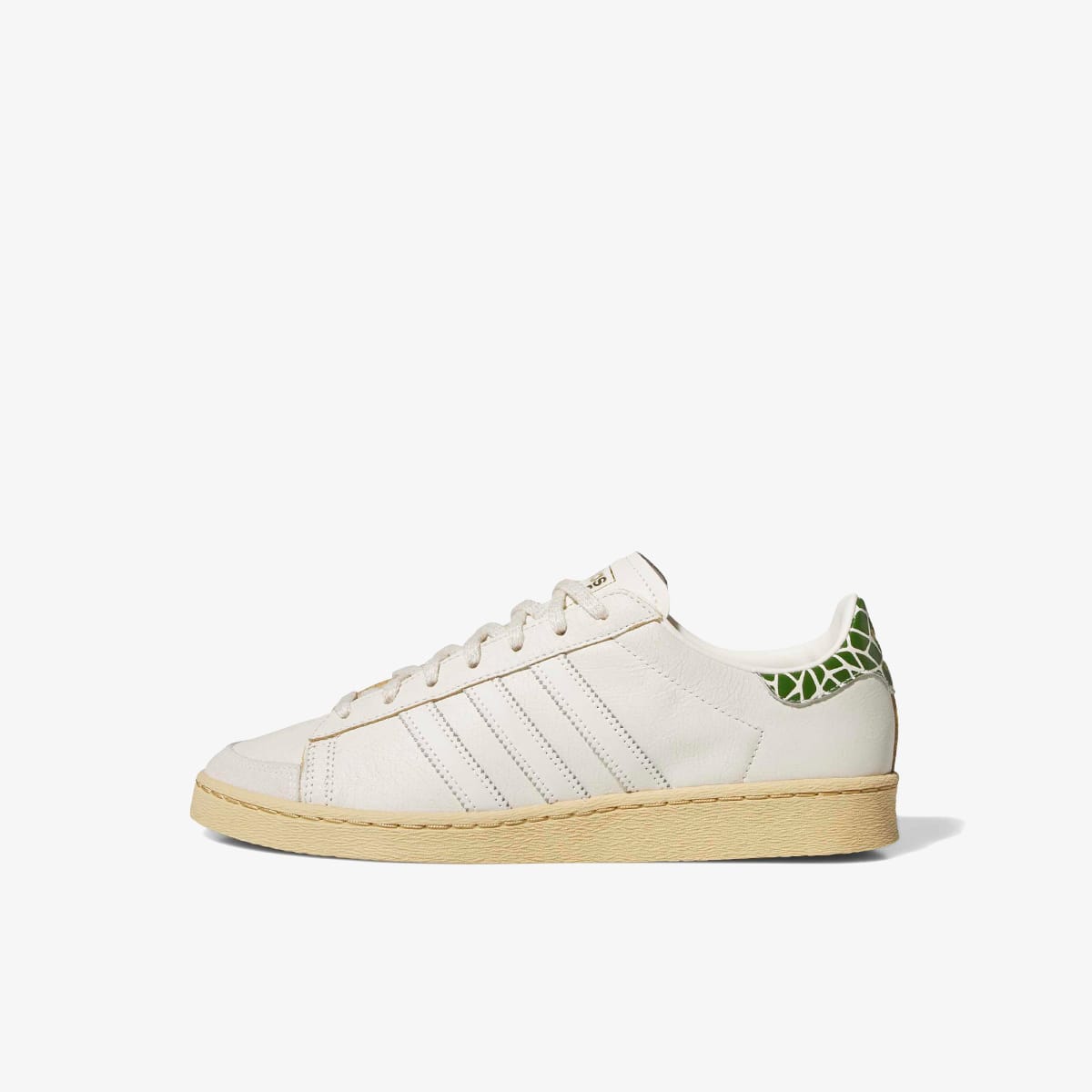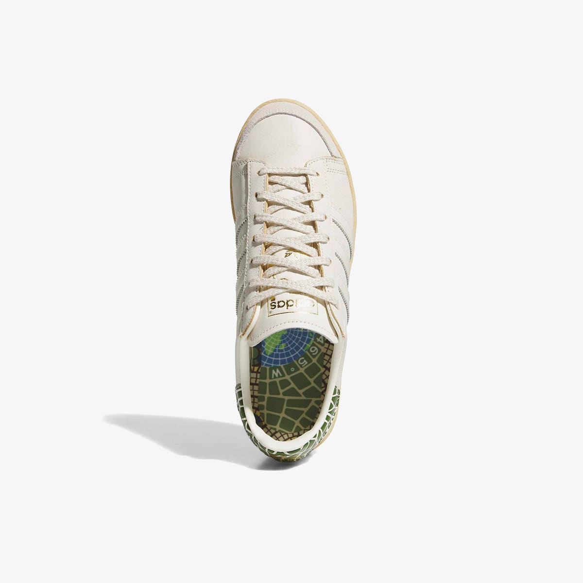adidas' most storied basketball silhouettes, giving the Jabbar Lo a considered, boutique‑level refresh. Known for its refined approach to sportswear and its focus on craftsmanship, the Atlanta-based label sets the tone here — sail leather, a cream sole and subtle gold details keep things understated, while the tile‑style heel graphic and world‑map insole nod to Kareem Abdul‑Jabbar’s global legacy. A considered update to a shoe rooted in hoops history.