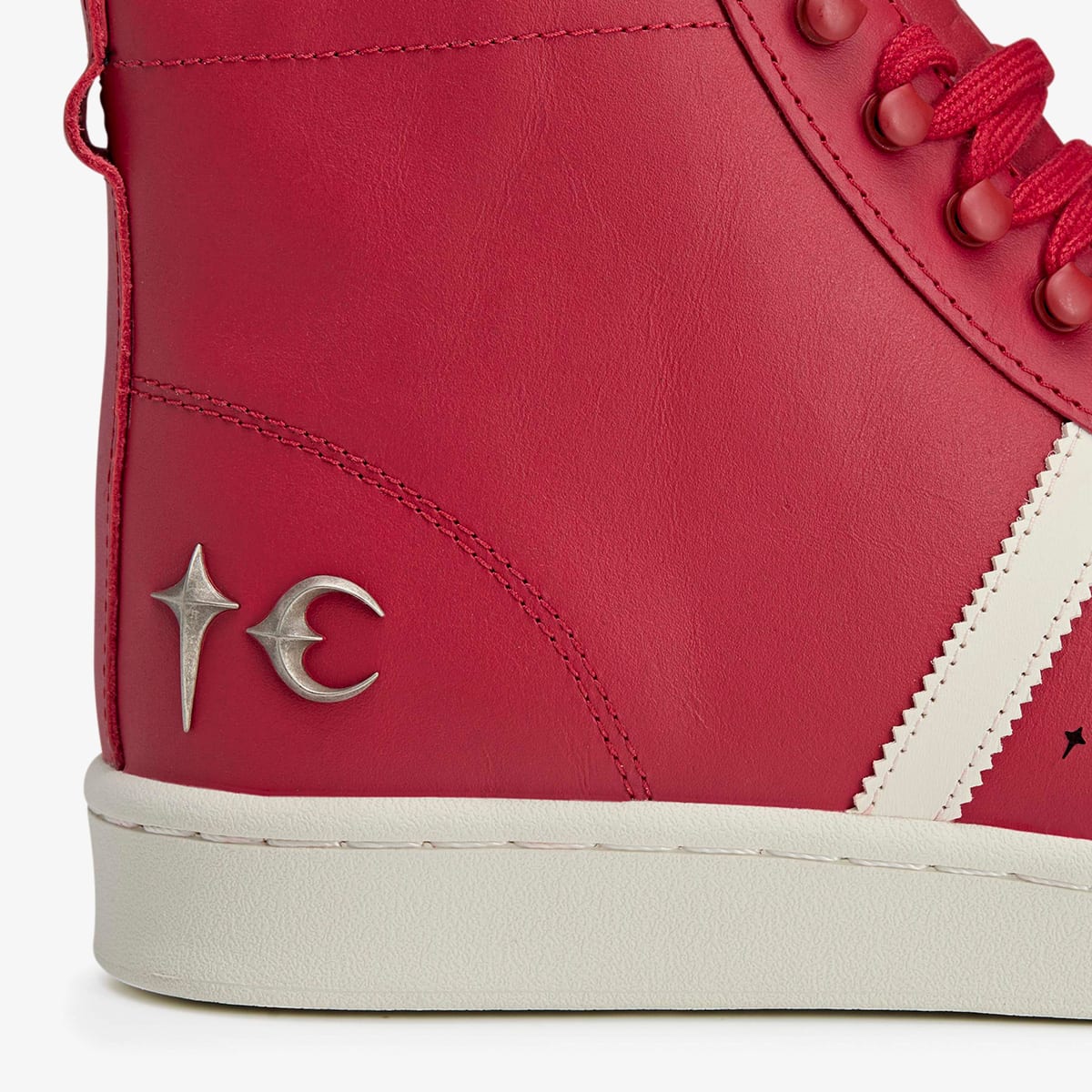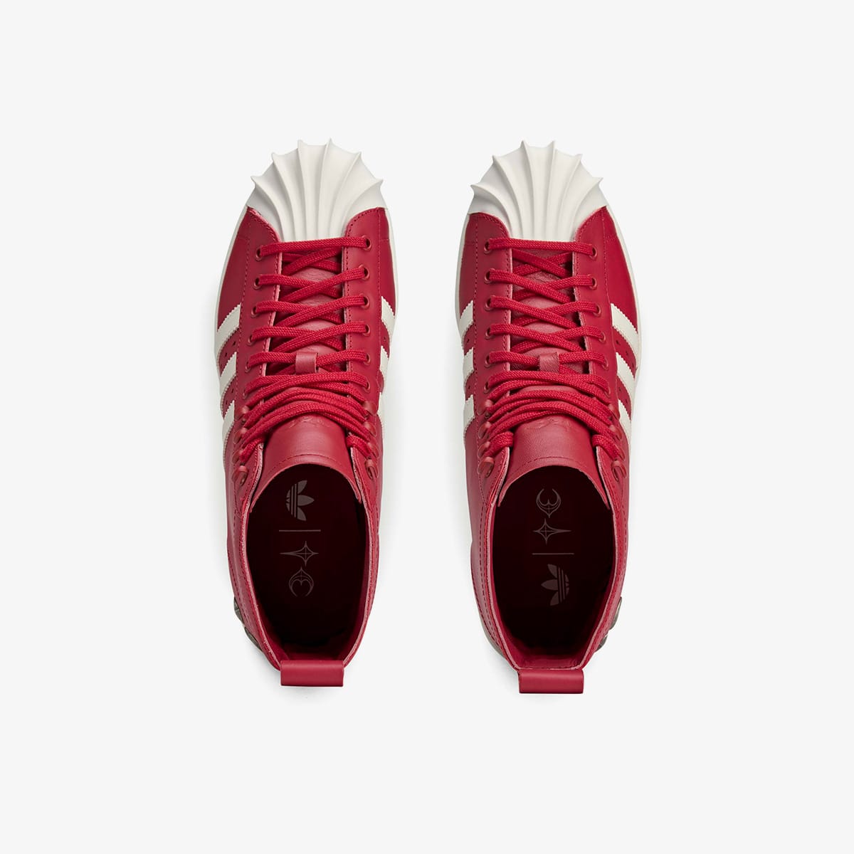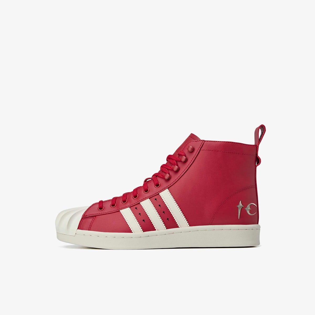 Thug Club flips the adidas Superstar into something unapologetically moto. The cult Korean label, known for its subversive rebellious, biker-meets-hip-hop aesthetic, takes on the Three-Stripes with the Superstar Boot. A bold red leather upper climbs high, anchored by chunky rubber toes built for the ride. Elongated heel tabs and a silver-tone “TC” badge seal the look with street-certified edge. It’s adidas, but not as you know it.