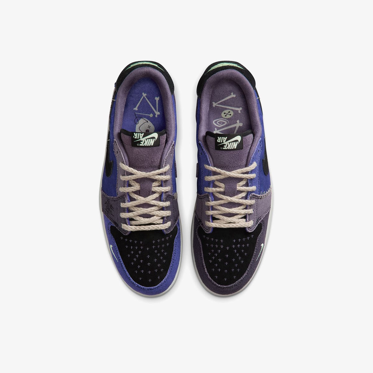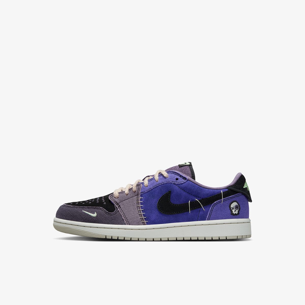 Headlining the Halloween line up, these Air Jordan 1’s are by NBA star Zion Williamson. Renowned for mismatched colour blocking and materials inspired by a voodoo doll, suede and canvas on the upper create a handcrafted feel. With skeleton inspired motifs and glow-in-the-dark Wings logos, a hidden Air unit and EVA midsole provide comfort and shock absorption before a rubber outsole reinforces the durability
