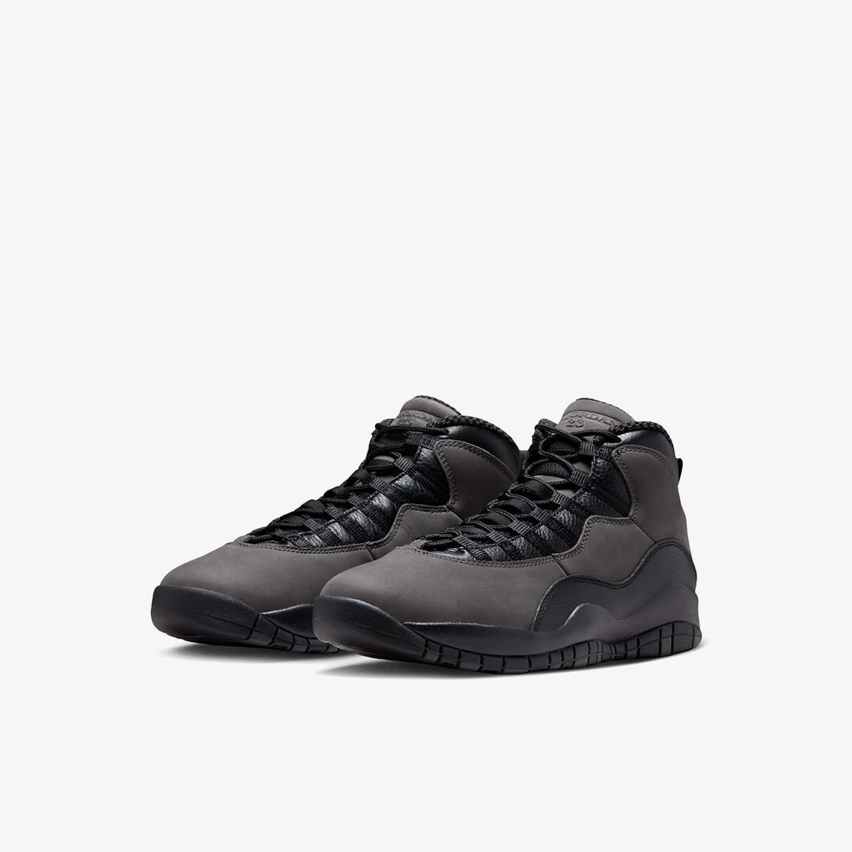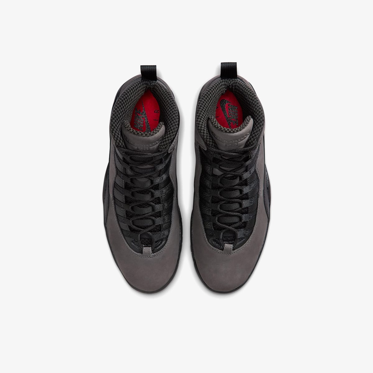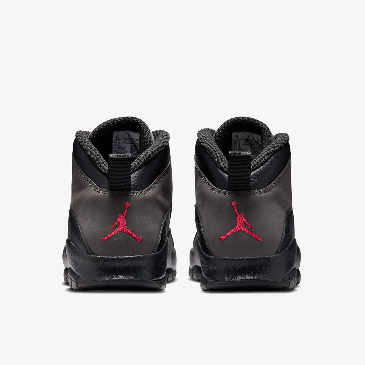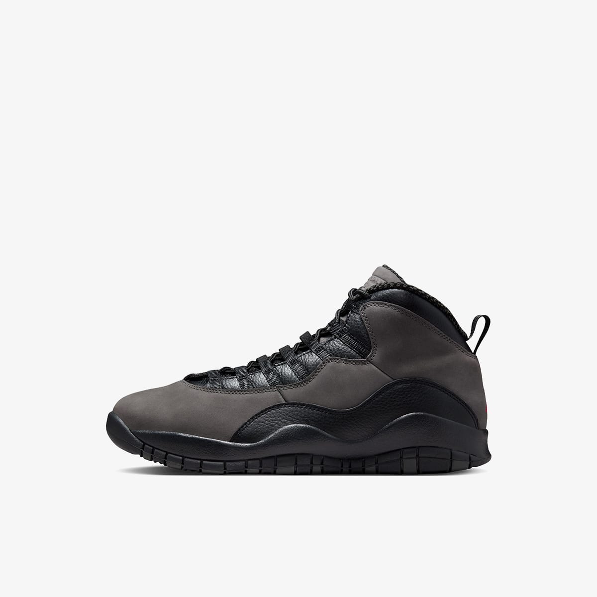 Crafted for fans of ‘90s basketball and timeless streetwear, the Air Jordan 10 Retro “Shadow” returns with a faithful nod to its original form. Designed by Tinker Hatfield, this edition features a charred grey nubuck upper paired with black tumbled leather overlays across the mudguard, eyestay, and collar—delivering a rugged, workboot-inspired edge. A crimson Jumpman logo pops on the heel, while checkerboard lining and a padded collar add comfort and visual intrigue.