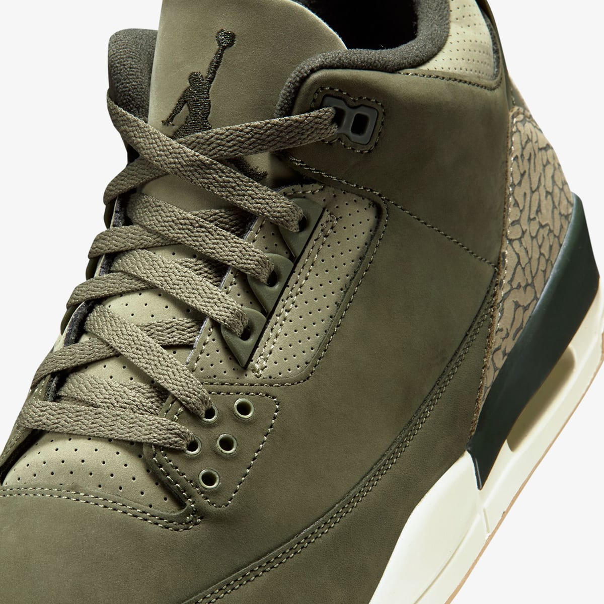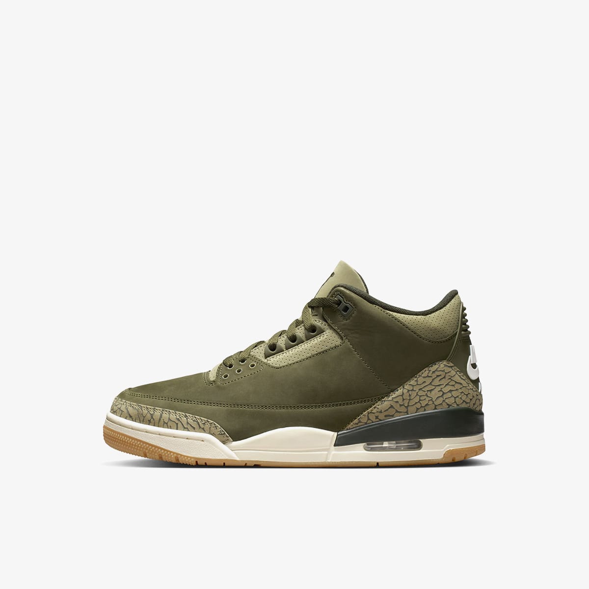 Creating an adventure-ready design, these Air Jordan 3 sneakers allow you to blend in whilst standing out. Nodding to hunting gear, a nubuck upper is dressed in realtree camouflage, whilst contrast TPU panels match the woodland colour scheme. Featuring a visible air unit and a comfortable polyurethane midsole, a grippy rubber outsole has optimal traction in mind