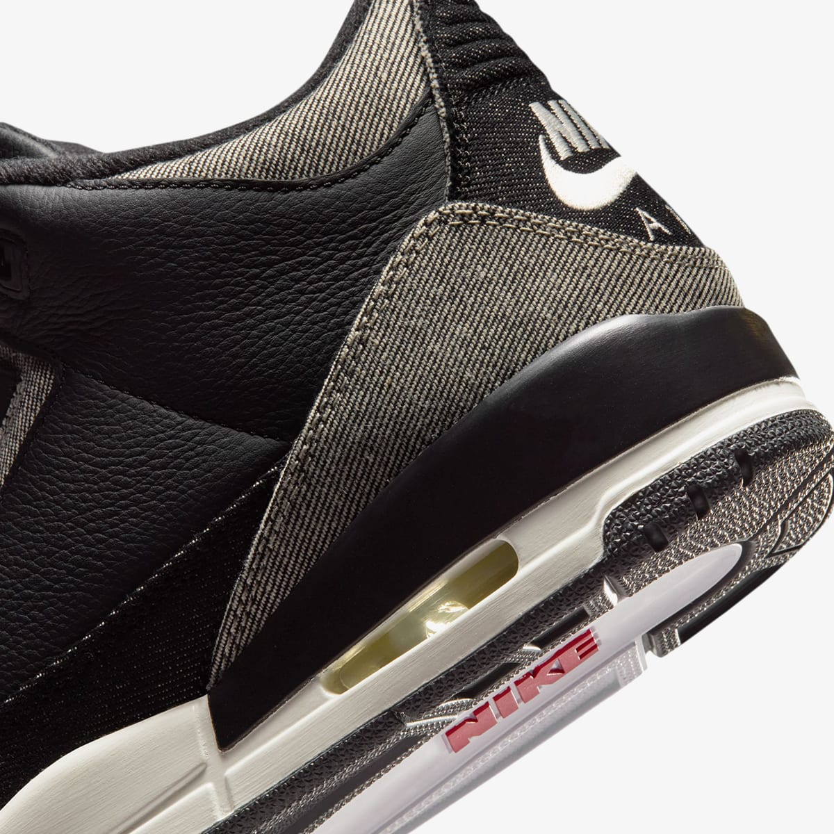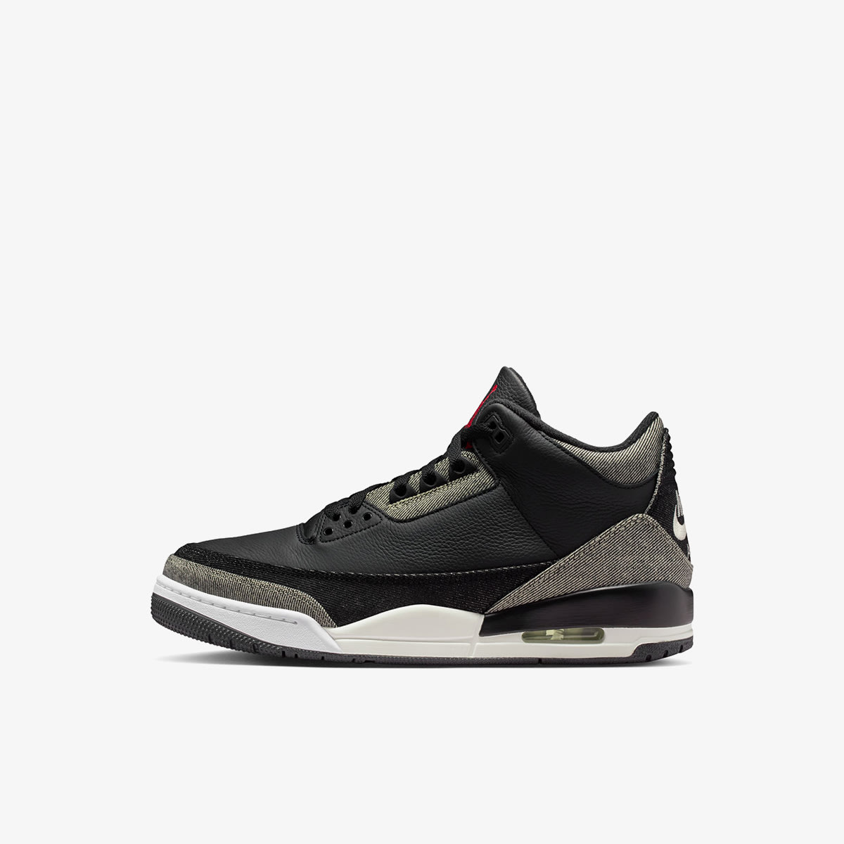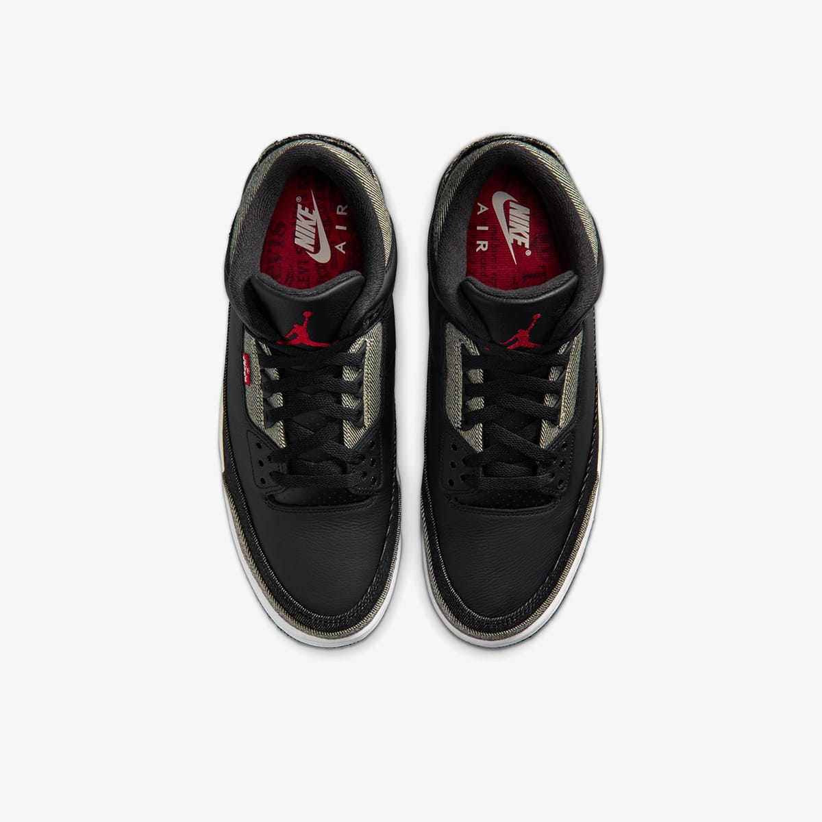 The Air Jordan 3 Retro carries the collaboration’s ethos of reworking American icons through craft, bringing Levi’s denim heritage to the forefront as it pairs denim panels with black leather and bold gym‑red hits that speak directly to Jordan’s sporting lineage. The mix of textures gives the silhouette a premium, tactile feel, while the red accents sharpen the profile and bring an energy that sets this pair apart from the more neutral iteration. Co‑branded details run throughout, tying Levi’s fabric legacy to the AJ3’s place in basketball history and reinforcing the idea of two originals reshaping their shared narrative. It’s a colourway built on contrast, elevated through material storytelling and driven by the collaboration’s commitment to redefining greatness.