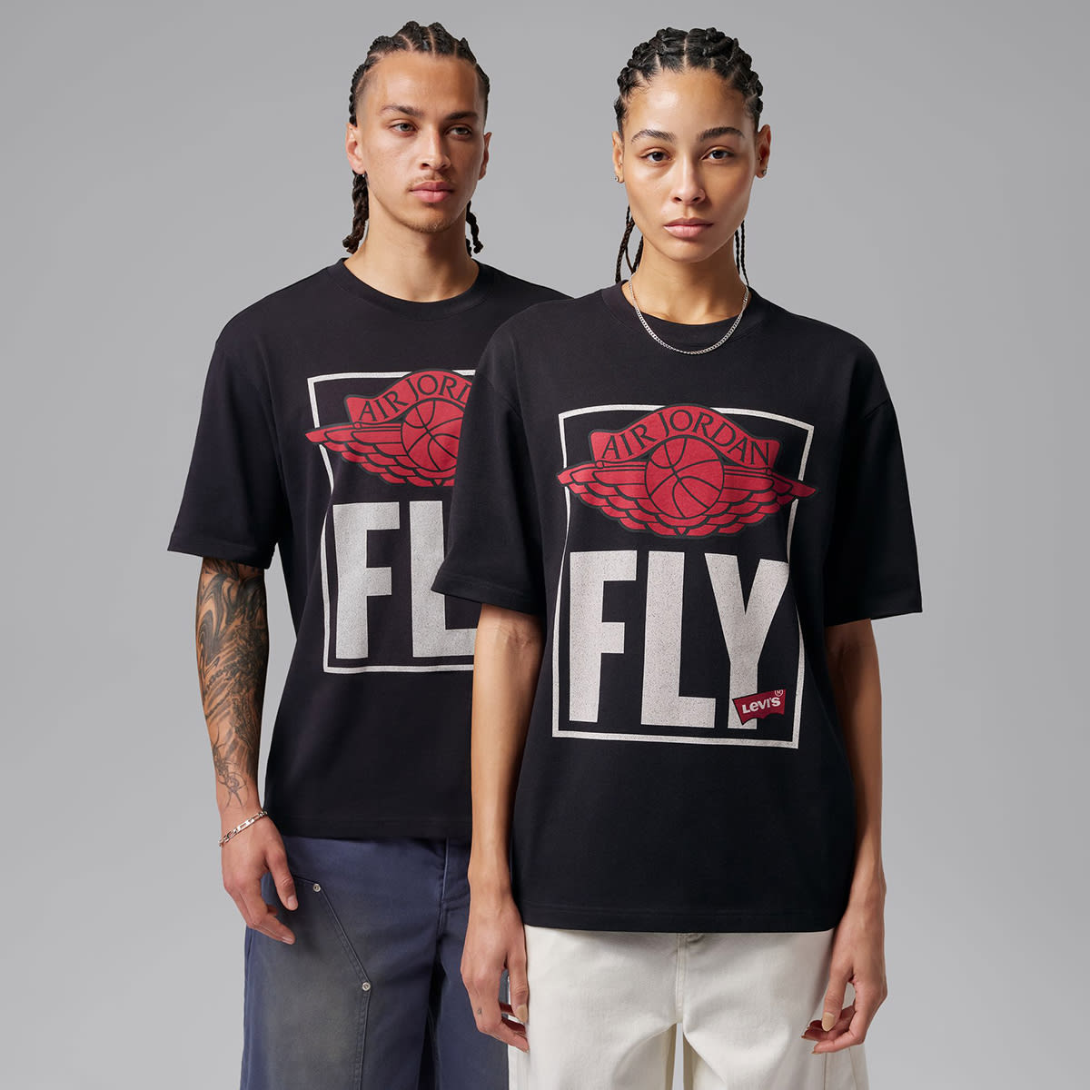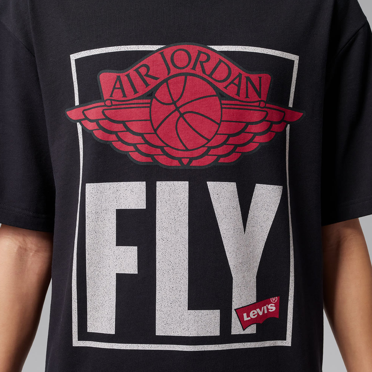 This T‑shirt pulls one of Levi’s most recognisable cultural touchpoints into the Jordan universe, reworking the 1990s “Button Your Fly” artwork that Spike Lee helped cement in pop culture. Set on a black base, the graphic brings together a bold red basketball‑and‑wings motif with a clean “FLY” hit and a small Levi’s tab, keeping the focus sharp and rooted in both brands’ histories. The cotton has an easy, broken‑in feel, giving the tee the kind of wearability that lets the graphic take the lead. It’s a simple format, but the lineage behind the artwork — and Spike’s role in both the original campaign and this new Jordan x Levi’s story — gives it a depth that goes beyond a standard logo tee.