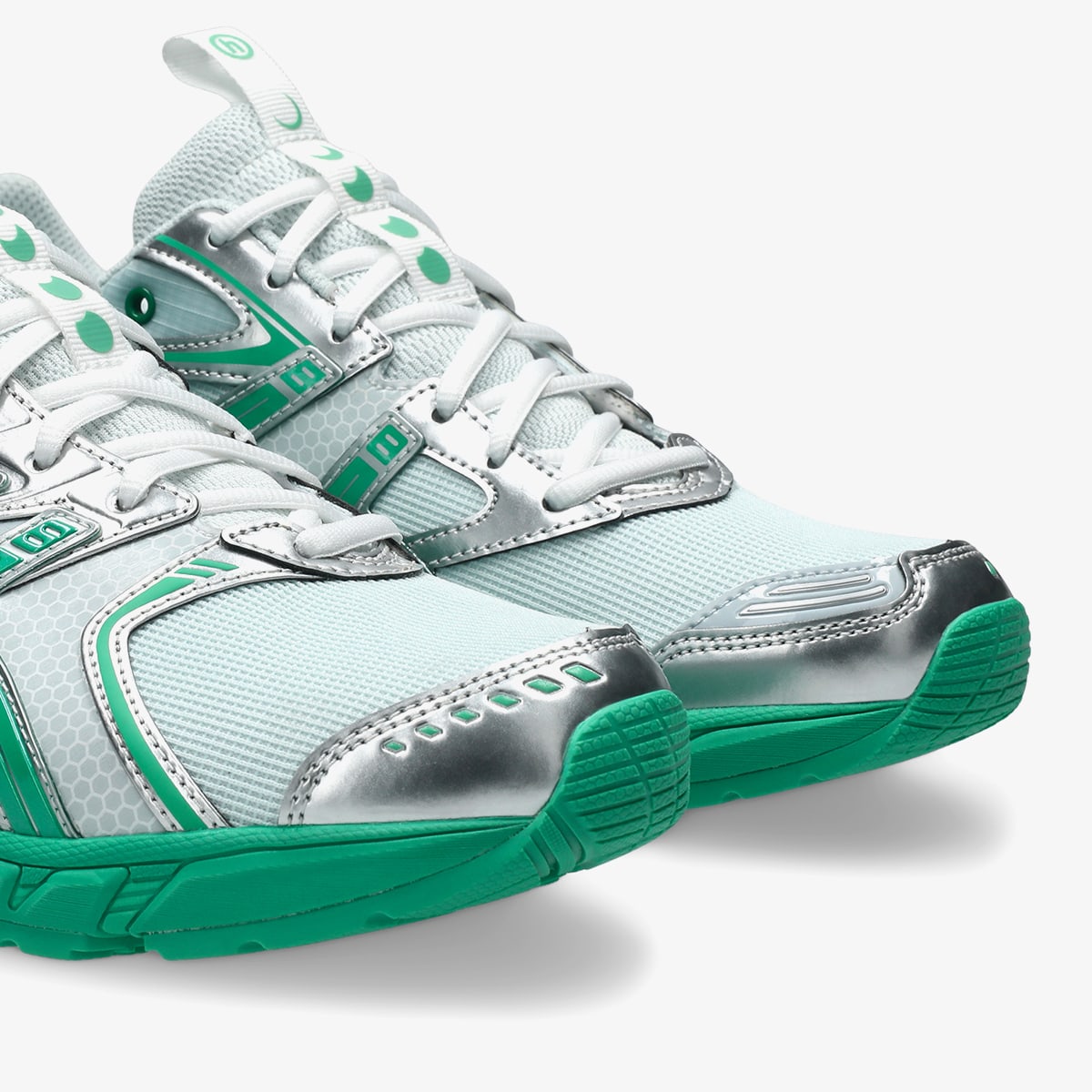 ASICS once again for the Gel-DS Trainer 14 ‘Dawn’. Inspired by sunrise, it pairs metallic silver and crisp white mesh with mint green accents that flow into the midsole. Born from light and movement, it filters ASICS’ performance roots and Japanese precision through a whole new lens.