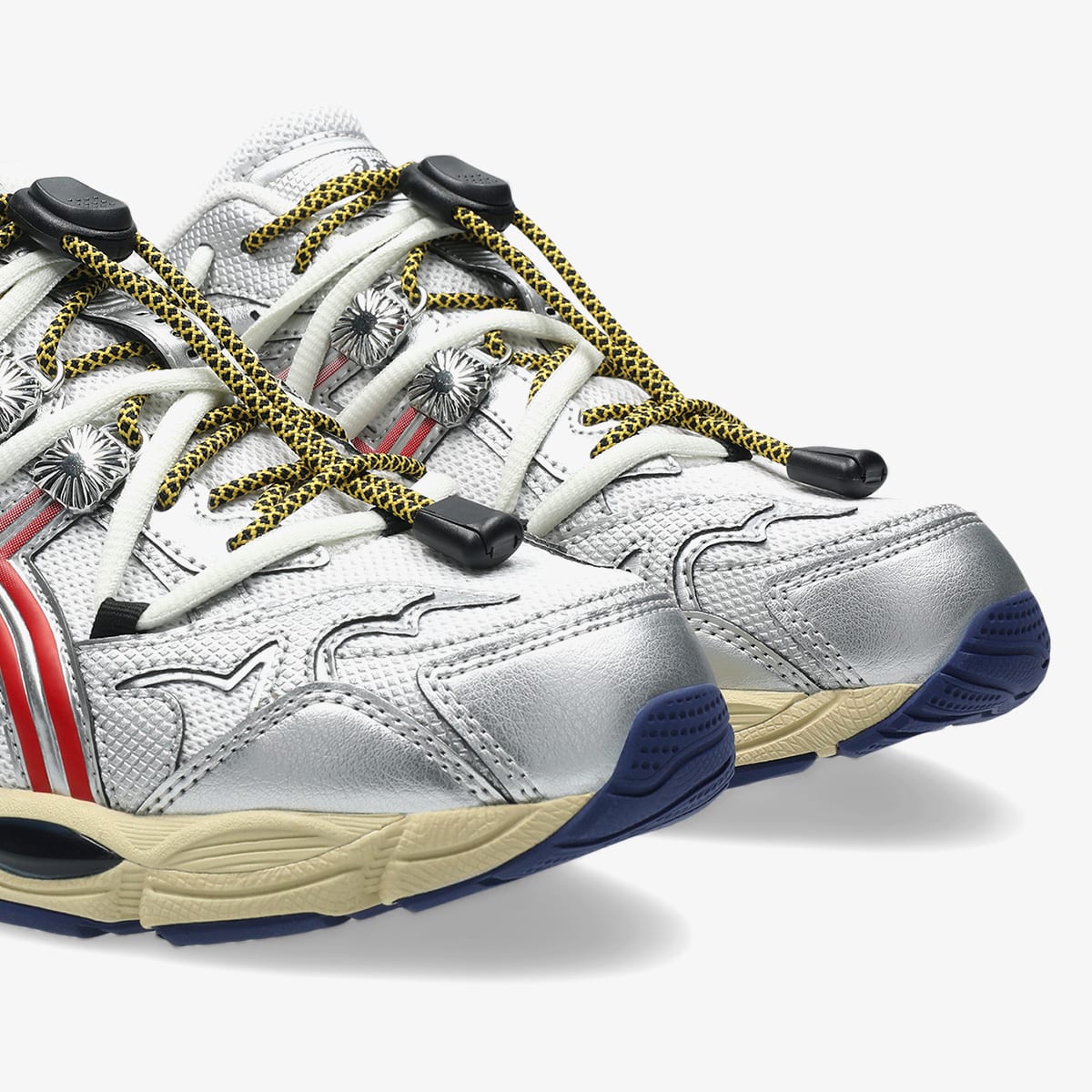 After making its debut on the AW25 runway, the ASICS x TOGA collaboration arrives with a fresh take on the iconic GEL-Cumulus 16 TG sneaker. This lifestyle silhouette fuses ASICS’ renowned running technology with TOGA’s avant-garde edge, delivering all-day comfort and standout style. Signature metal studs and a unique double lacing system introduce bold colour and pattern play, while co-branded details accent the heel for a distinctive finish.