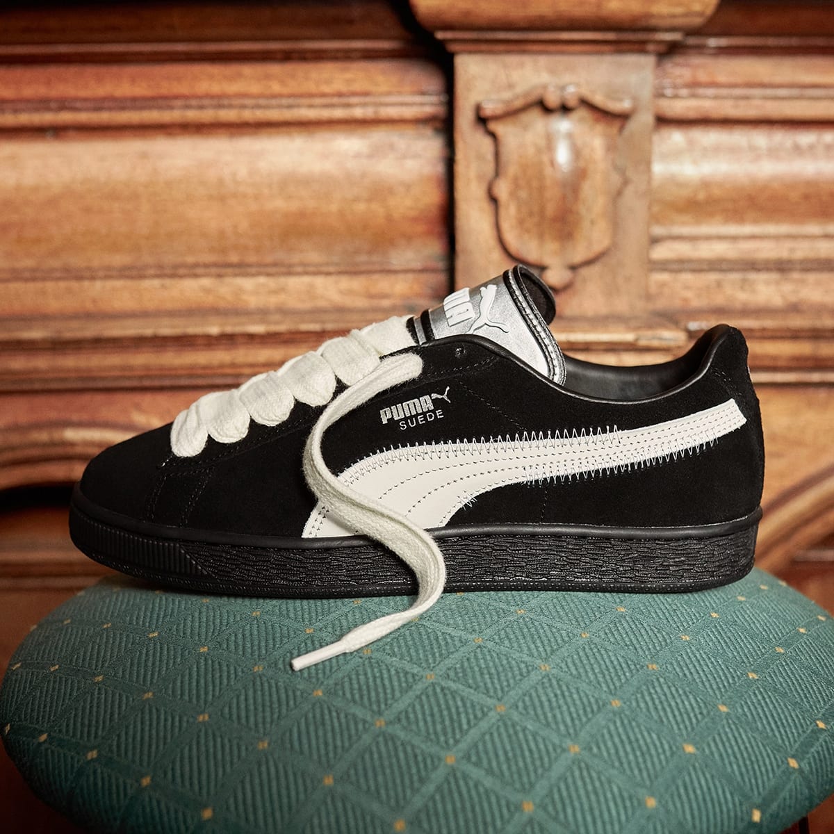 PUMA joins END.'s 20th anniversary celebrations with an exclusive take on the legendary Suede sneaker. Rooted in cultural heritage and community, this collaboration turns its focus to Britain’s most iconic institution, the pub – home of sporting culture. The Suede – which first hit the scene in 1968 – is reworked, taking design cues from PUMA’s archive, with overstitching details on the side and silver tongue which nods to classic football boots. PUMA branding sits in all the usual places, along with its signature Formstrip, while END. leaves its mark on the heel and co-branded insole.