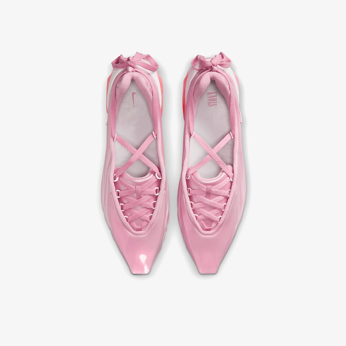 Nike joins forces with London-based label KNWLS to unveil the Air Max Muse Ballet – an avant-garde sneaker that fuses luxury with a ballet aesthetics. First revealed during Milan Fashion Week as part of KNWLS’s Spring/Summer ‘26 “Synergy” collection, the sculptural silhouette features a pointed toe, quilted black leather upper, and extended lace wraps reminiscent of ballet flats. Glossy TPU accents add contrast, while a mini Swoosh and co-branded details add subtle flair. Underfoot, the chunky heel houses exposed Max Air units for responsive support and cushioning. The Air Max Muse Ballet reimagines performance running through a fashion-forward lens, blending elegance and edge in one striking package.