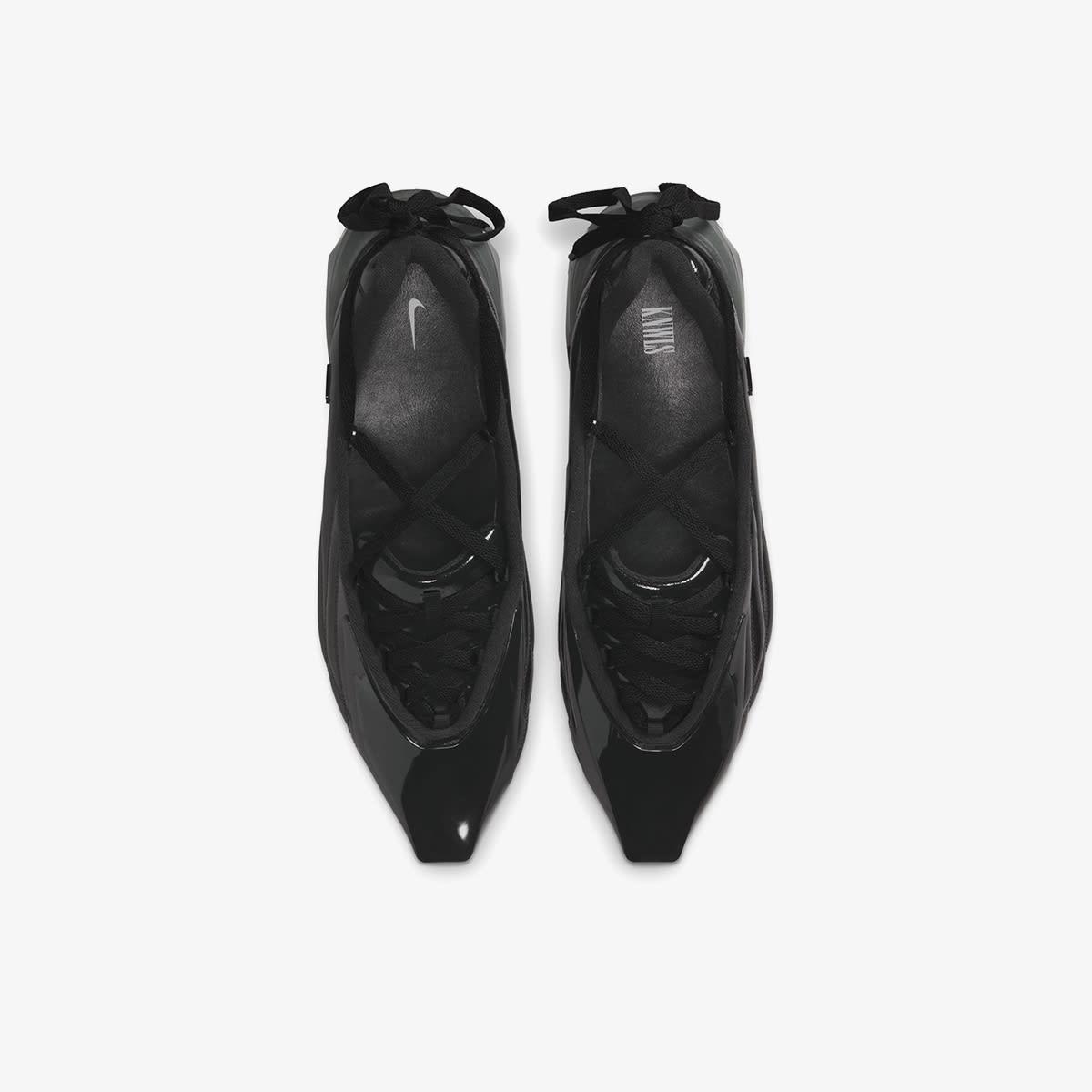 Nike joins forces with London-based label KNWLS to unveil the Air Max Muse Ballet – an avant-garde sneaker that fuses luxury with a ballet aesthetic. First revealed during Milan Fashion Week as part of KNWLS’s Spring/Summer ‘26 “Synergy” collection, the sculptural silhouette features a pointed toe, quilted black leather upper, and extended lace wraps reminiscent of ballet flats. Glossy TPU accents add contrast, while a mini Swoosh and co-branded details add subtle flair. Underfoot, the chunky heel houses exposed Max Air units for responsive support and cushioning. The Air Max Muse Ballet reimagines performance running through a fashion-forward lens, blending elegance and edge in one striking package.