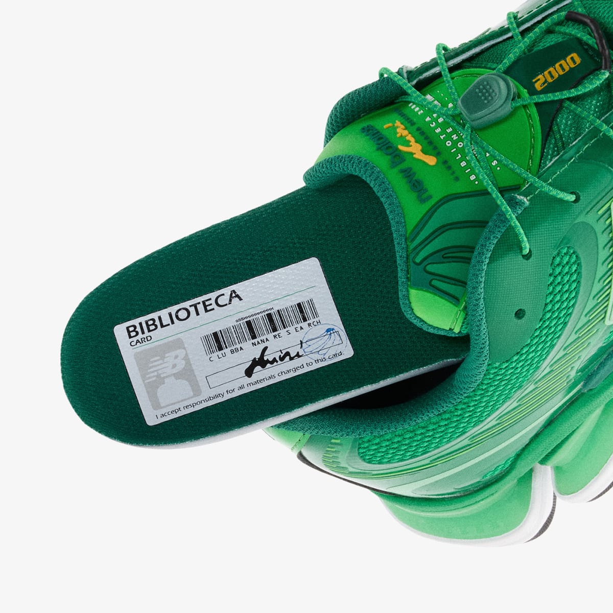 New Balance, taking on the ABZORB 2000 in a new chapter dubbed “Biblioteca”. The library is a community space that cultivates creativity and learning, and Aminé celebrates it here with plenty of details that you don’t need to be a bookworm to appreciate. Calling back to the card handed out by the local library during the musician's upbringing, this pair comes drenched in striking green hues. Inside, you’ll find a custom library card detail, and if you turn down the lights, they glow in the dark too.