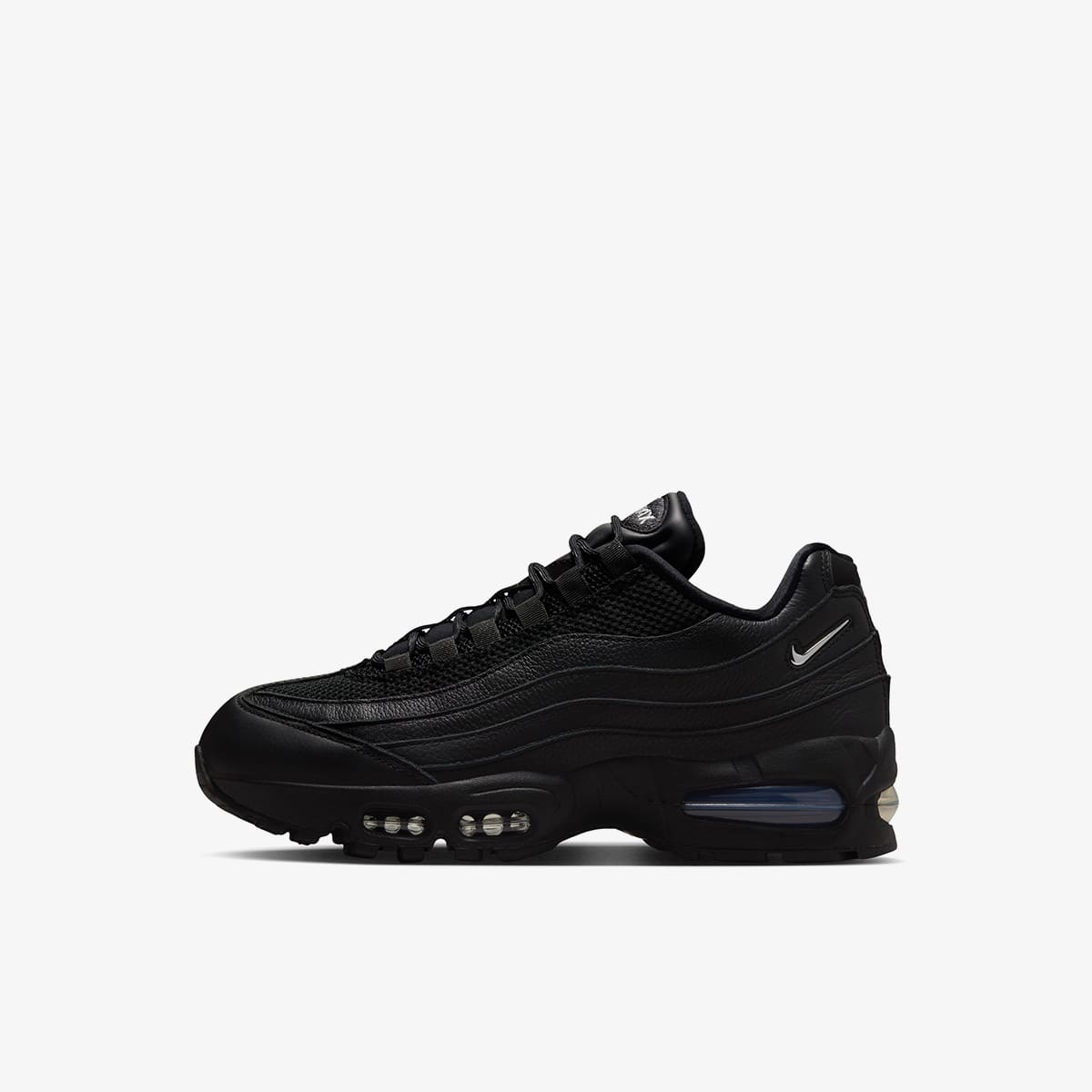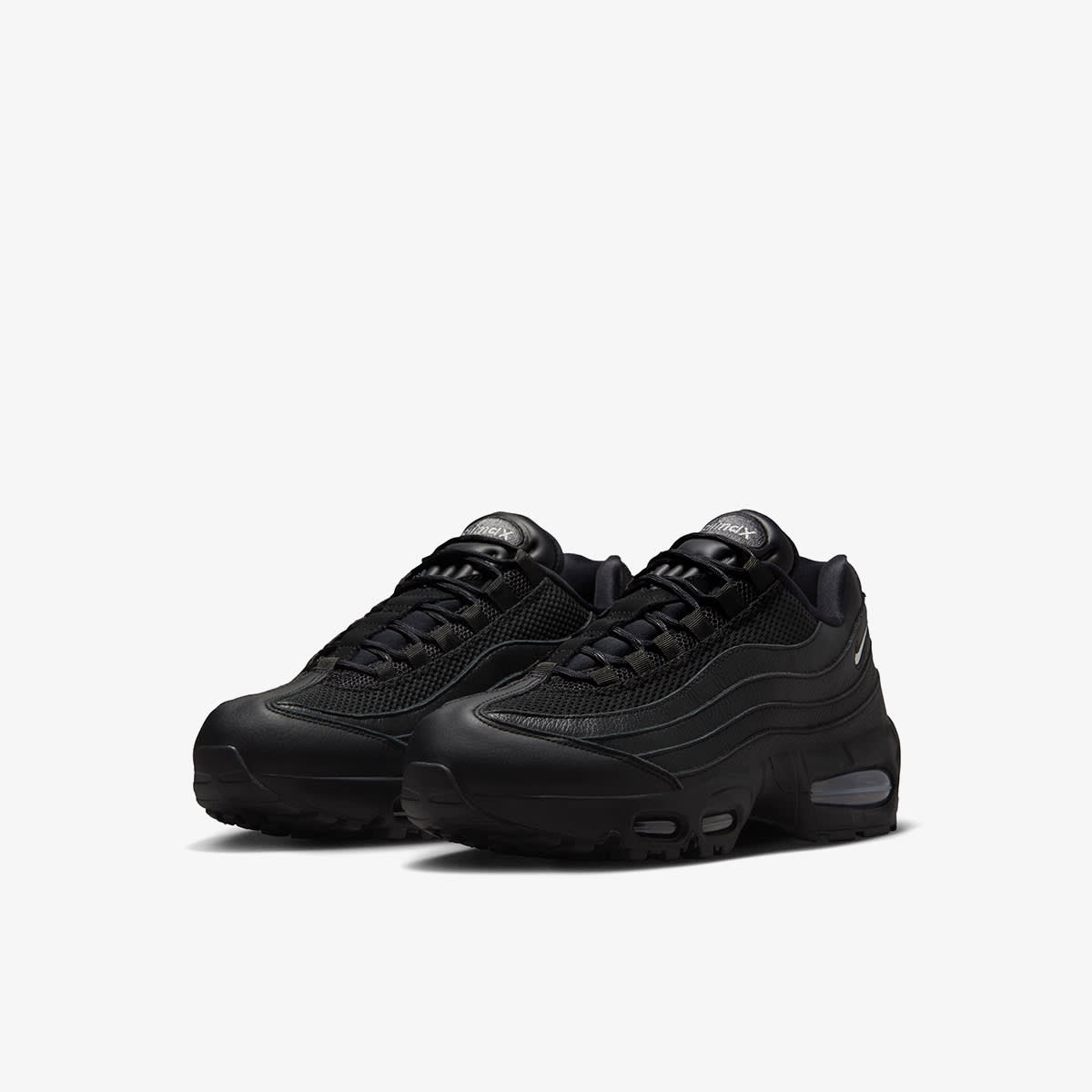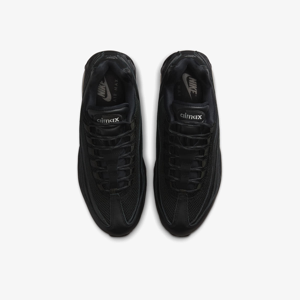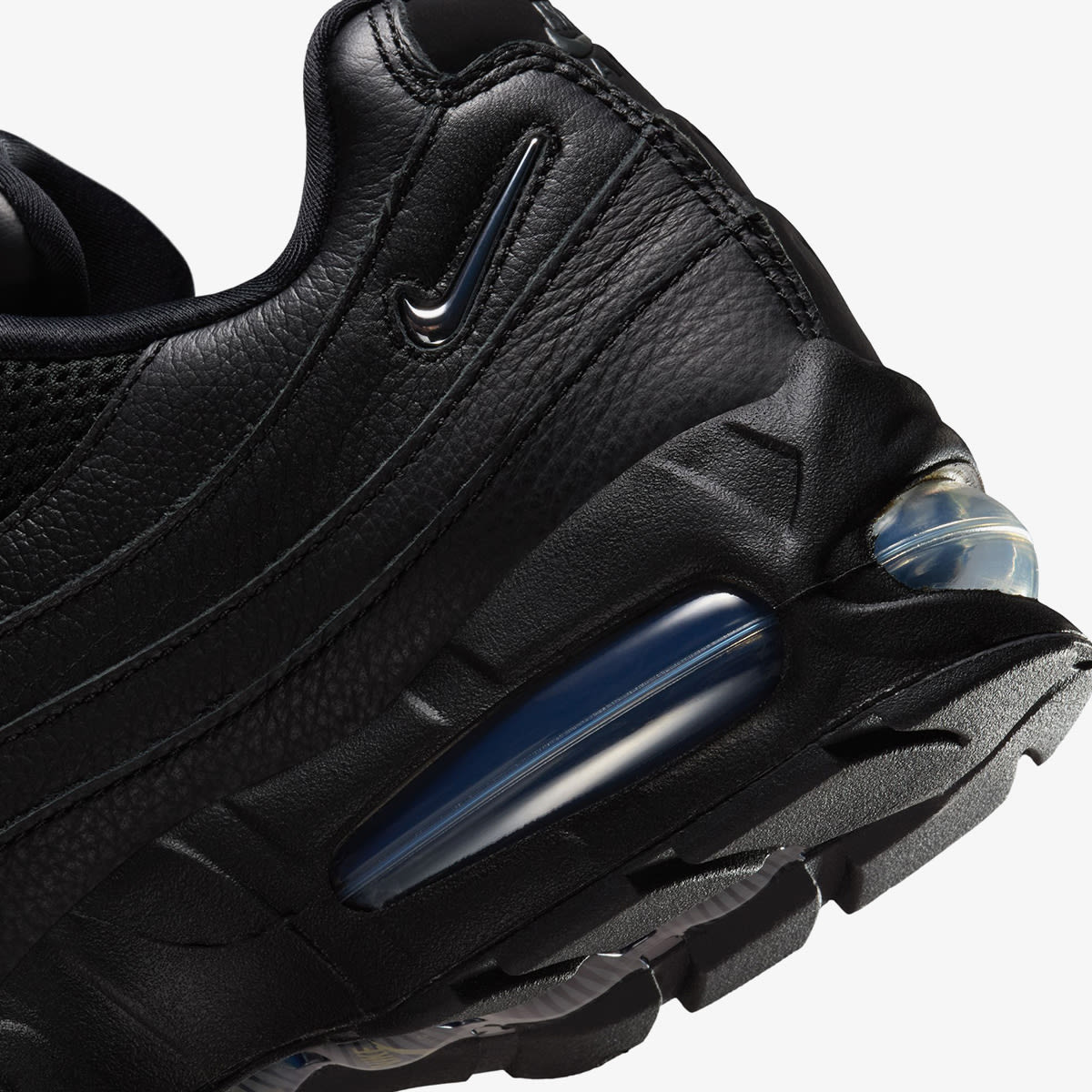 Nike’s Air Max 95 “Big Bubble” goes full stealth mode as the celebrations for the silhouette’s 30th anniversary continue. Originally conceived by Sergio Lozano and inspired by the human body, the 95 often lands with neon hits and gradient hues — but not this time. All black leather and mesh feature up top, joined by a silver metallic Swoosh at the rear. And of course, the oversized Air bubble in the heel brings it ever closer to the OG blueprint.