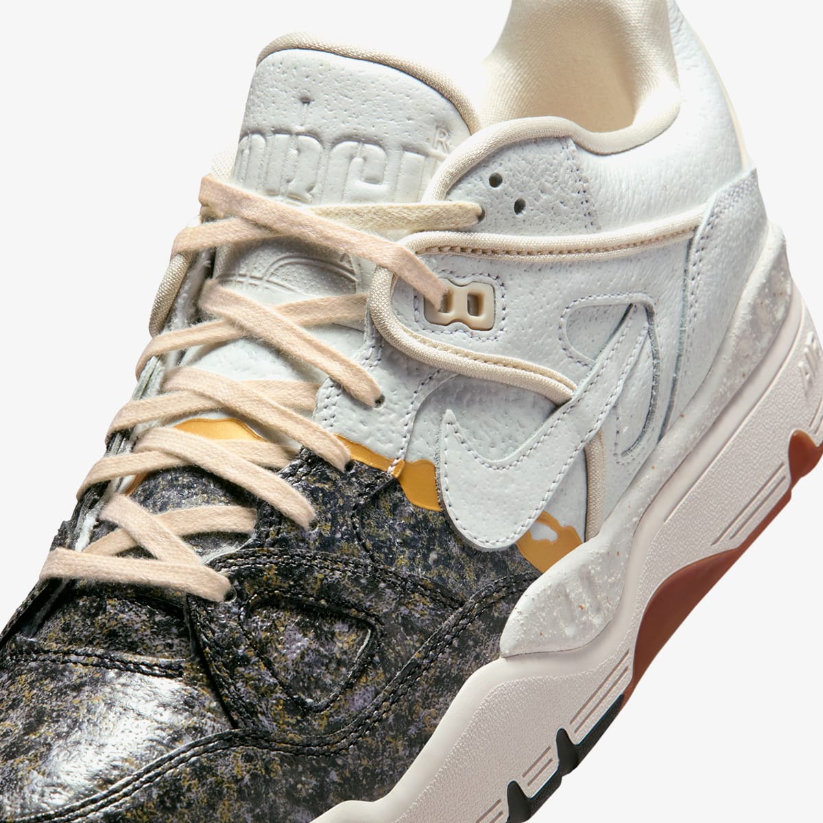 The Nike x Nigo Air Force 3 Low ‘Kintsugi’ sneaker reimagines the classic silhouette through the lens of Japanese artistry and craftsmanship. Inspired by kintsugi – the art of mending pottery with gold – each pair features textured leather which translates the look and feel of pottery, while asymmetrical colour blocking and a split-coloured midsole celebrate imperfection. Premium materials, co-branded insoles, and themed packaging complete this fusion of heritage and streetwear innovation. Transforming every crack into character, each detail honours the beauty of broken things made whole, blending Nike’s legacy with Nigo’s creative vision, pushing the boundaries of sport and style.
