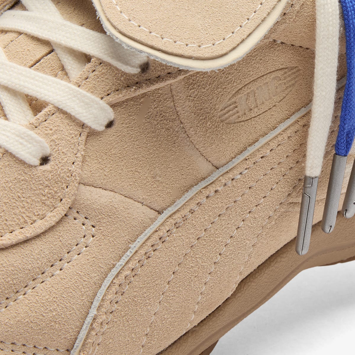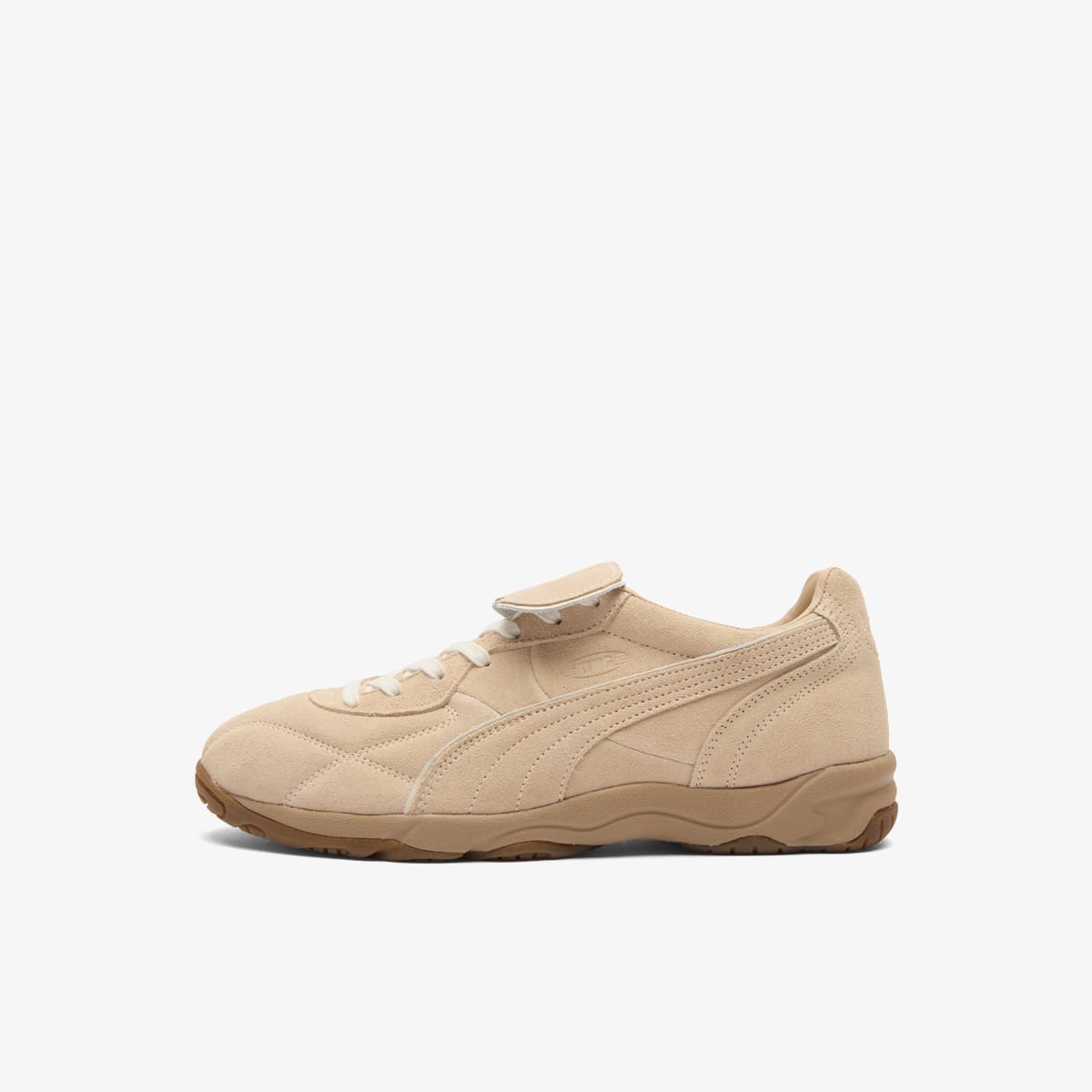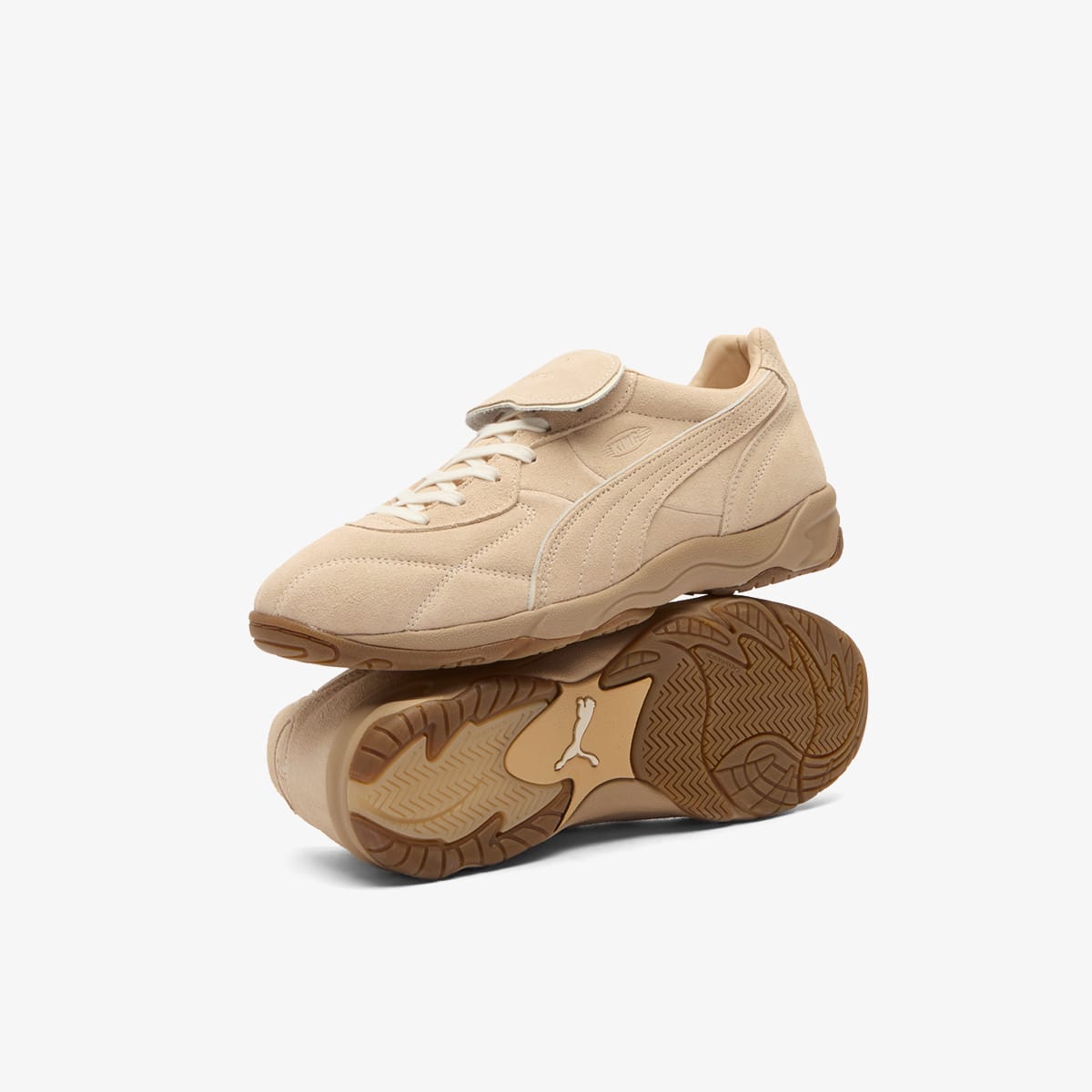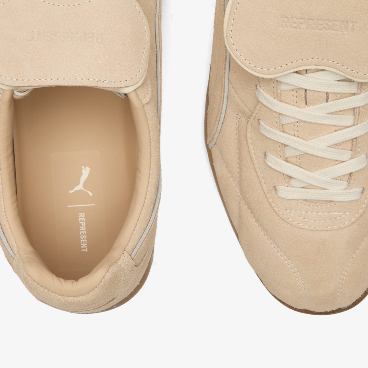 PUMA and Represent come together for a collaboration that bridges sport and style. Originally crafted for football legends, the King Indoor boot is an early 2000s icon which earned its name through unmatched performance and timeless style. Now, Represent reimagines that legacy through a modern lens, blending British streetwear minimalism with PUMA’s sporting heritage. The silhouette stays true to its roots with its fold-over tongue, but with a reworked design that shines the spotlight on its premium suede upper, tonal palette, and subtle branding. It’s a refined evolution of a football icon and a nod to street culture.
