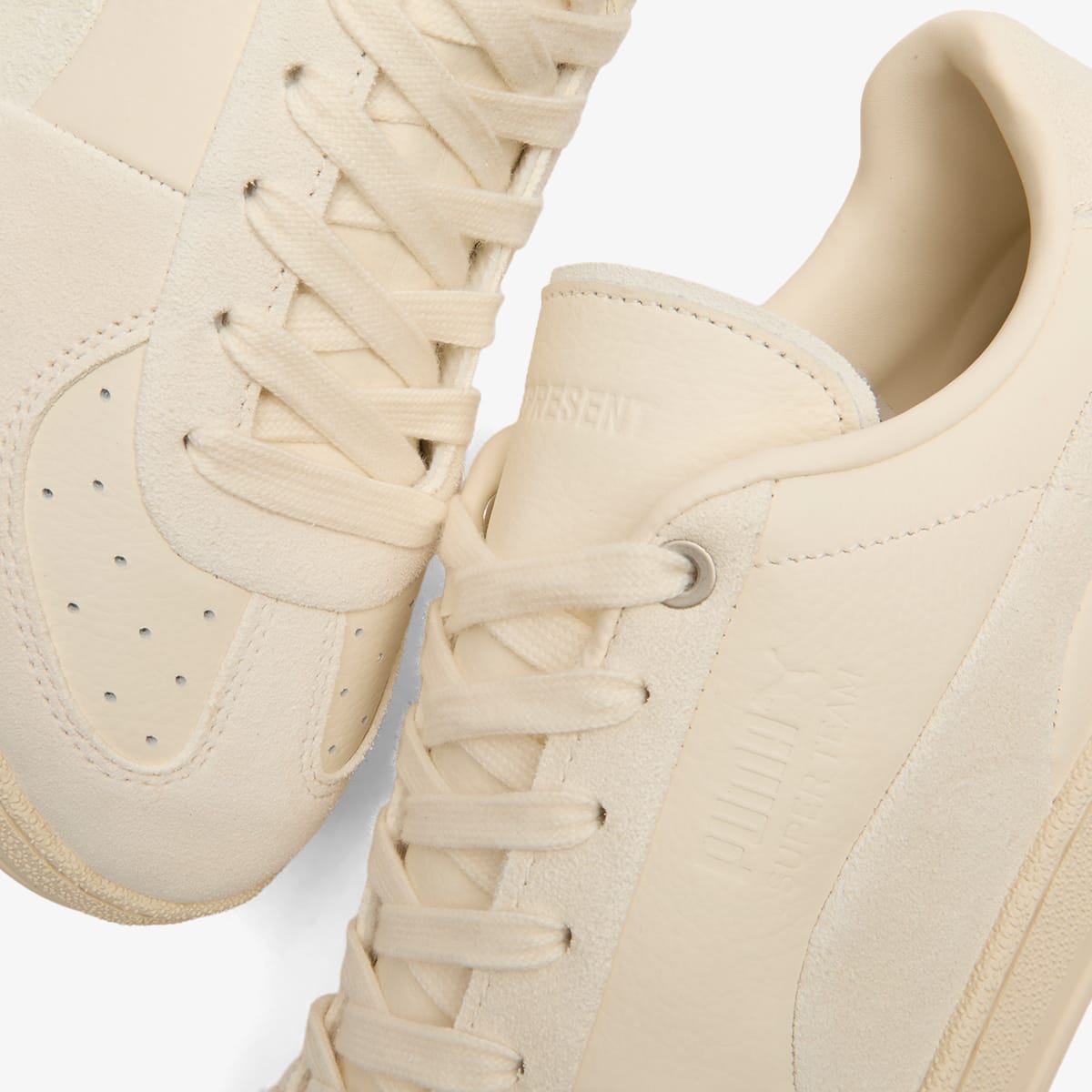 The PUMA x Represent Super Team sneaker is a revival rooted in precision, heritage, and modern streetwear. First introduced in 1982 as an indoor training shoe, the Super Team was built for performance – its gum cupsole and separate heel piece offering grip and stability on the court. Now, it’s reimagined through Represent’s minimalist lens. This updated version features tonal suede overlays and reinforced stitching on the midsole, enhancing durability while keeping the silhouette clean and refined. The collaboration strips back the noise, focusing on craftsmanship, texture, and timeless design.
