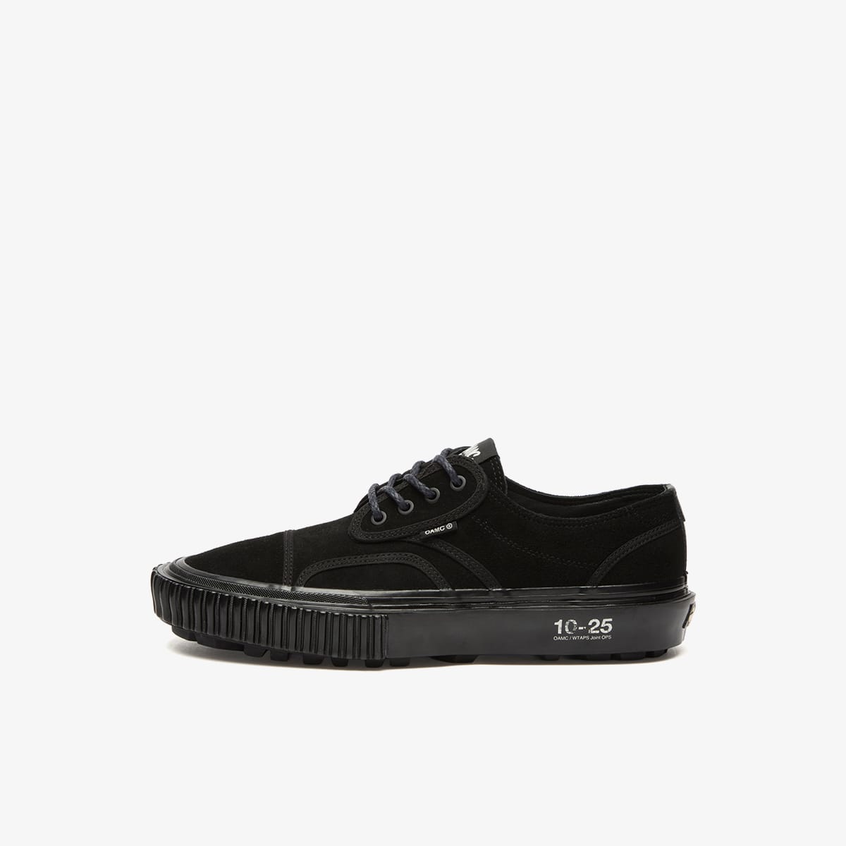 A stealthy evolution of the classic skate silhouette, the Seylynn Lug in black channels utilitarian precision through a triple-brand lens. WTAPS’ tactical DNA meets OAMC’s engineered minimalism, grounded by Vans OTW’s skate heritage and rugged lug sole. The result is a monochrome powerhouse—built for urban terrain and subcultural credibility. Subtle co-branding and layered textures elevate the sneaker’s understated impact.